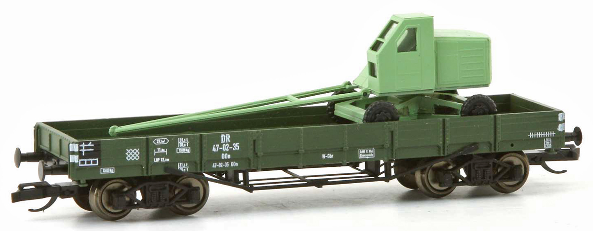 | nízkostěnný nákladní vůz zelený s nákladem bagru T 170 |