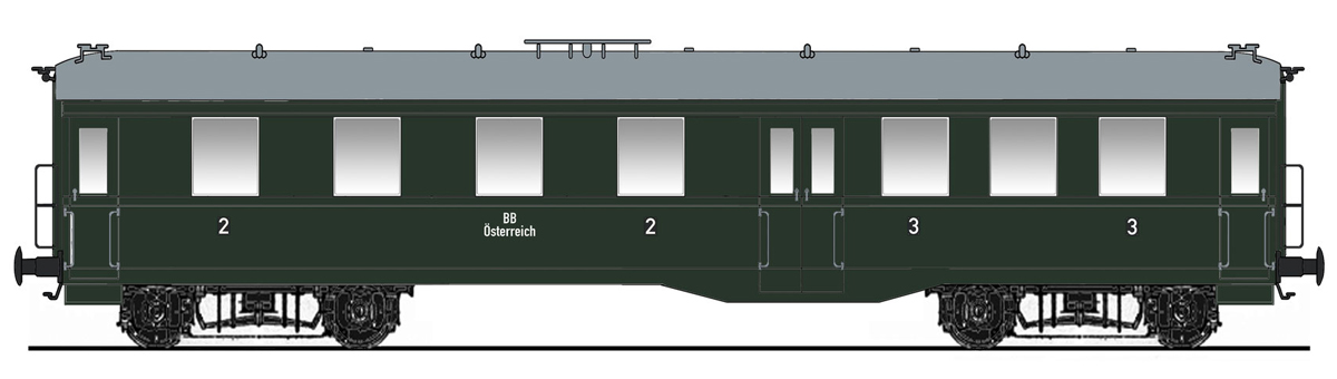 | osobní vůz zelený s šedou střechou 2./3. tř. |