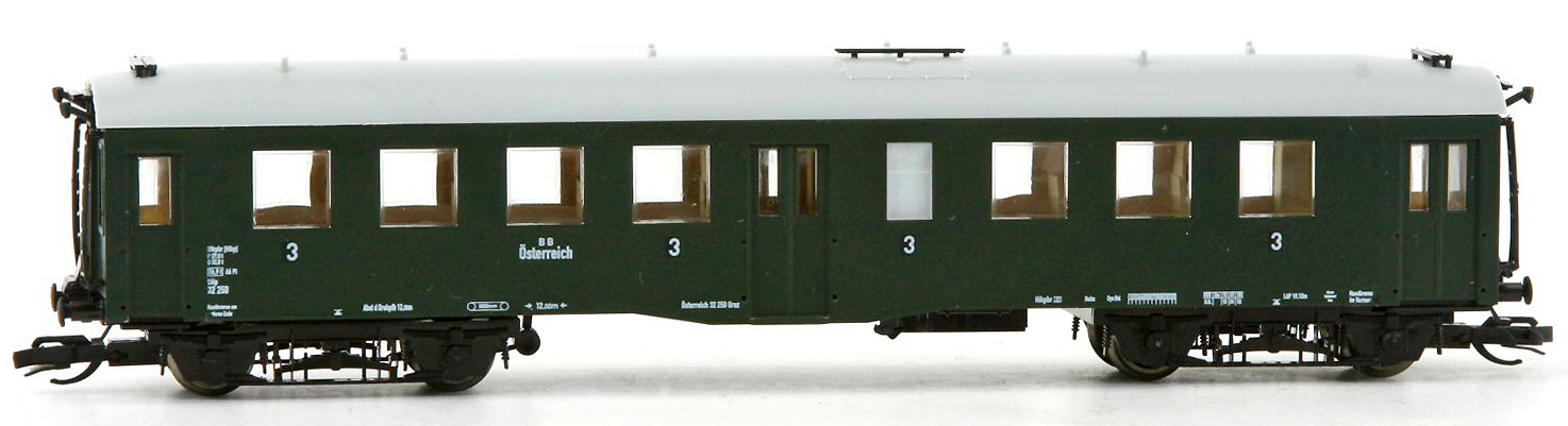 | osobní vůz zelený s šedou střechou 3. tř. |