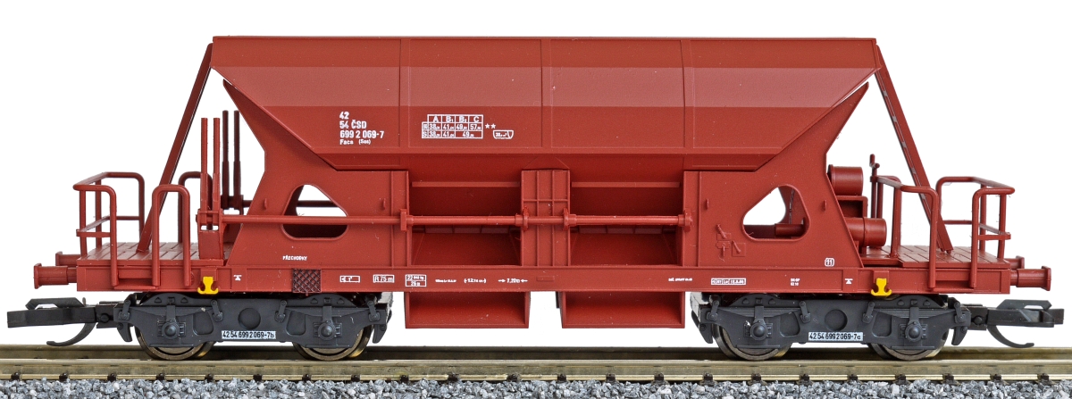 | samovýsypný vůz červenohnědý, černé plošinky, přetisk čísla |