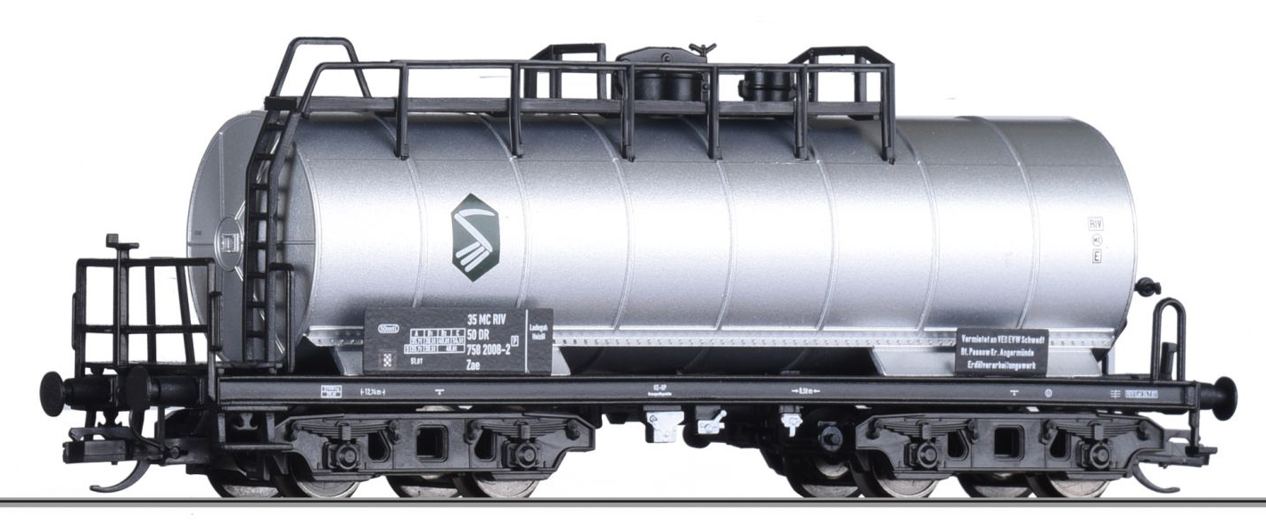 | kotlový vůz stříbřitý s logem „VEB EVW Schwedt“ |