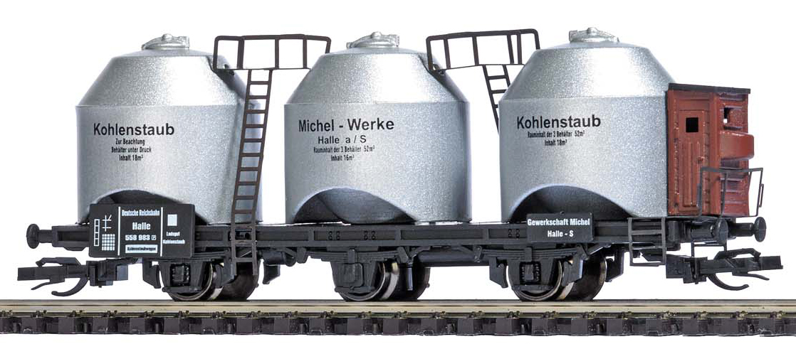 nákladní nádobový vůz na přepravu uhelného prachu s brzdařkou budkou