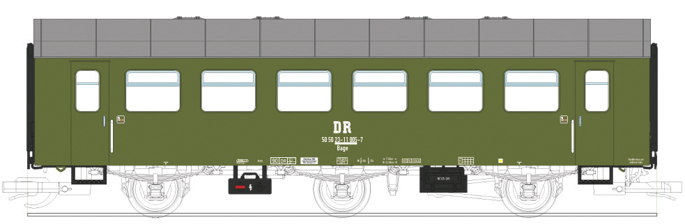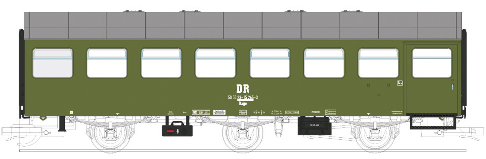 | rekonstruovaný zavazadlový vůz zelený s šedou střechou |