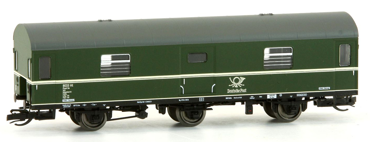 | rekonstruovaný poštovní vůz zelený s šedou střechou |