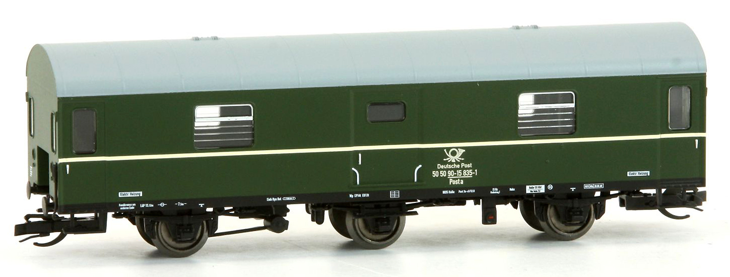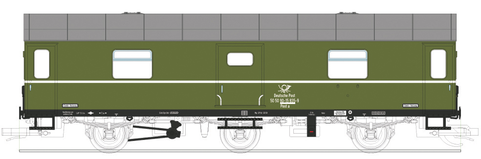 | rekonstruovaný poštovní vůz zelený s šedou střechou |