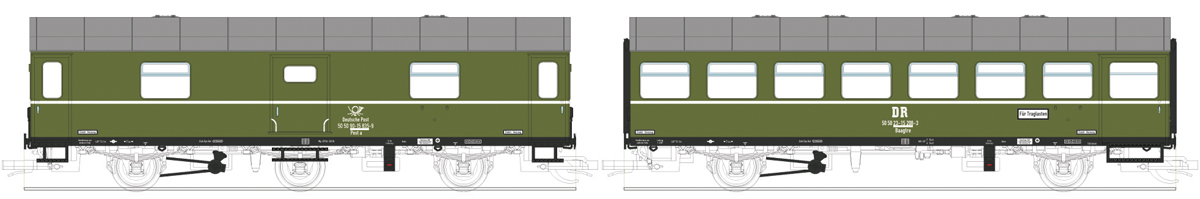 | set dvou rekonstrovaných vozů, 1x poštovní, 1x osobní |