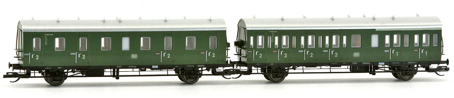 | oddílový osobní vůz zelený se stříbrnou střechou 1./2. tř. |