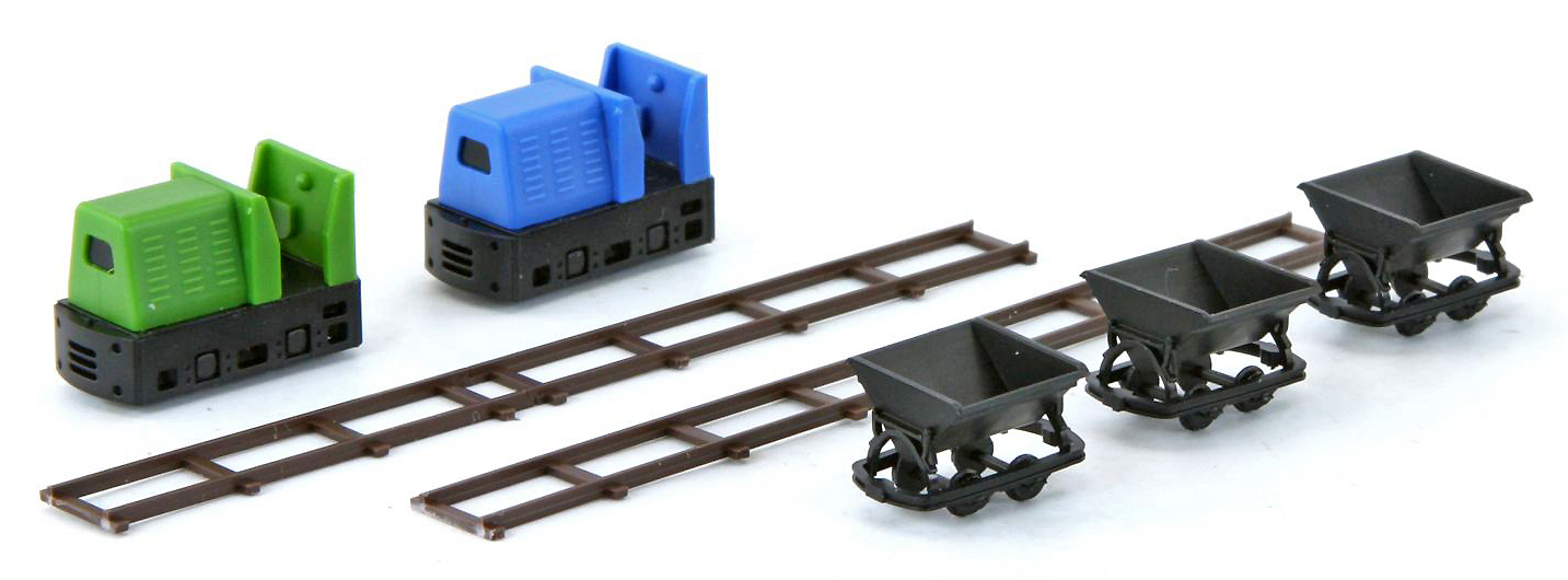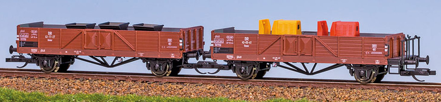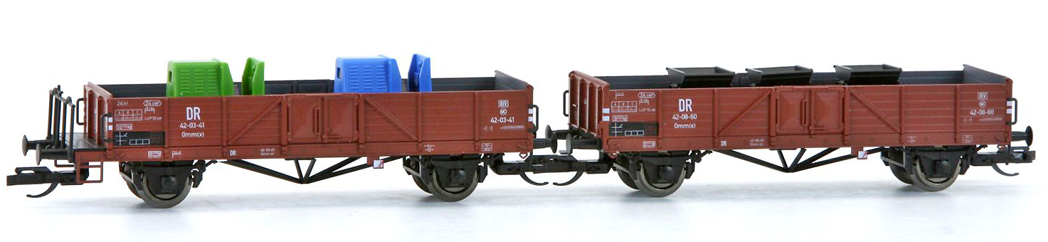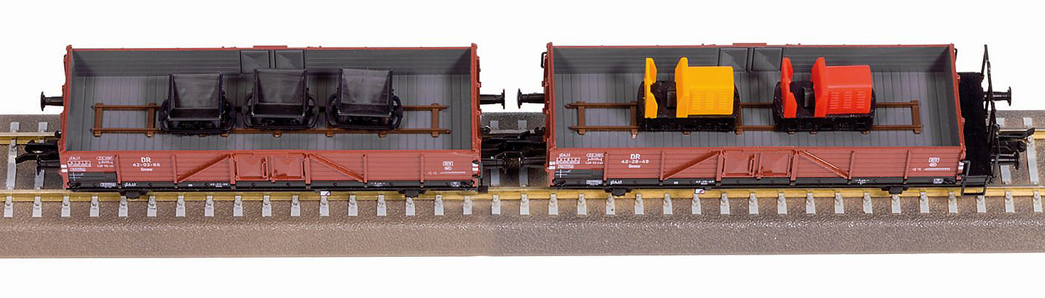 | set dvou otevřených nákladních vůz s nákladem lokomotiv a vozů polní dráhy |