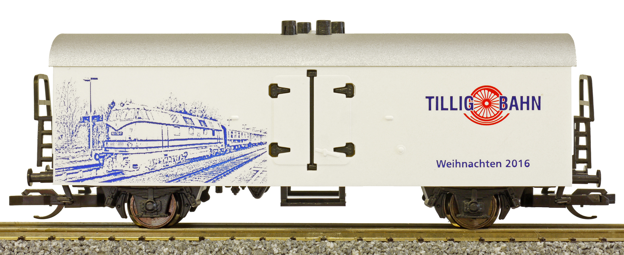 | chladící vůz bílý s šedou střechou a s reklamním potiskem „Weihnachten 2016“ |