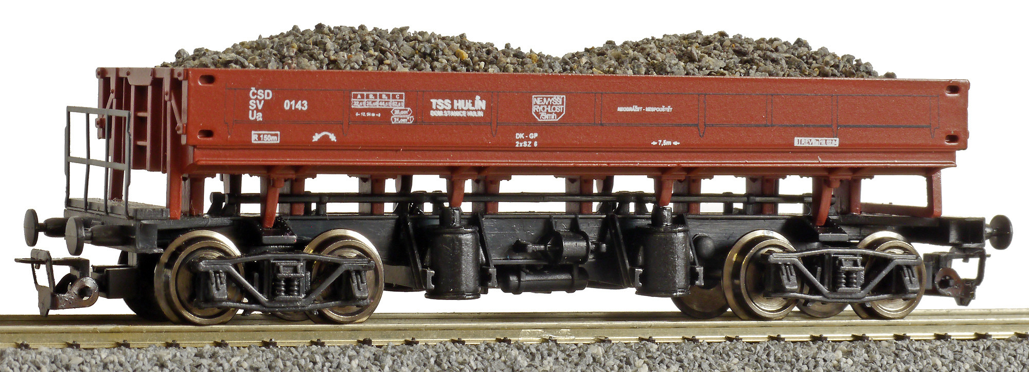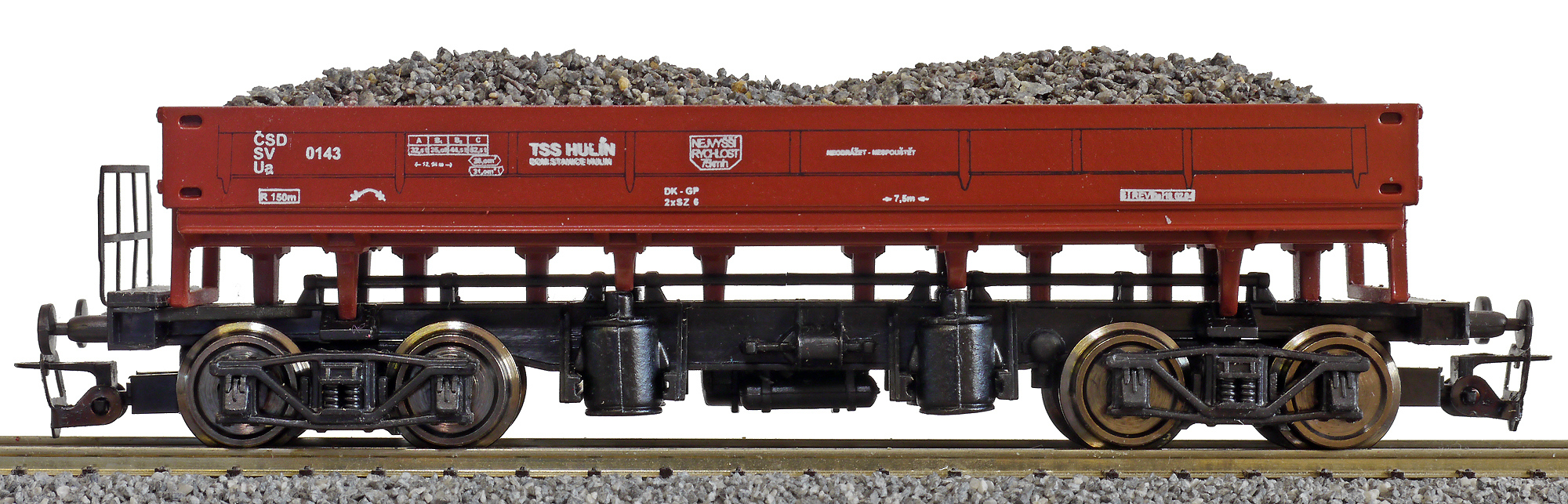 Popis   nákladní vůz oboustranně výsypný červený s černým pojezdem a nákladem