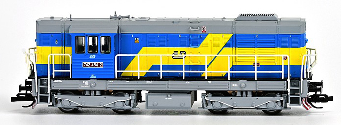 | dieselová lokomotiva modrá-žlutá, šedá střecha, rám a pojezd |