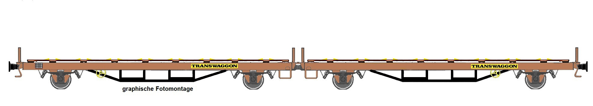 | dvojdílný plošinový nákladní vůz červenohnědý s držáky „Transwaggon“ |