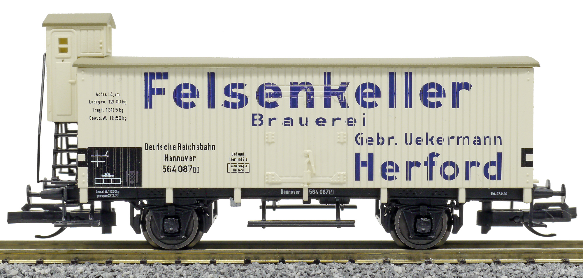 | chladicí vůz bílý s šedou střechou „Felsenkeller Brauerei Herford“ |