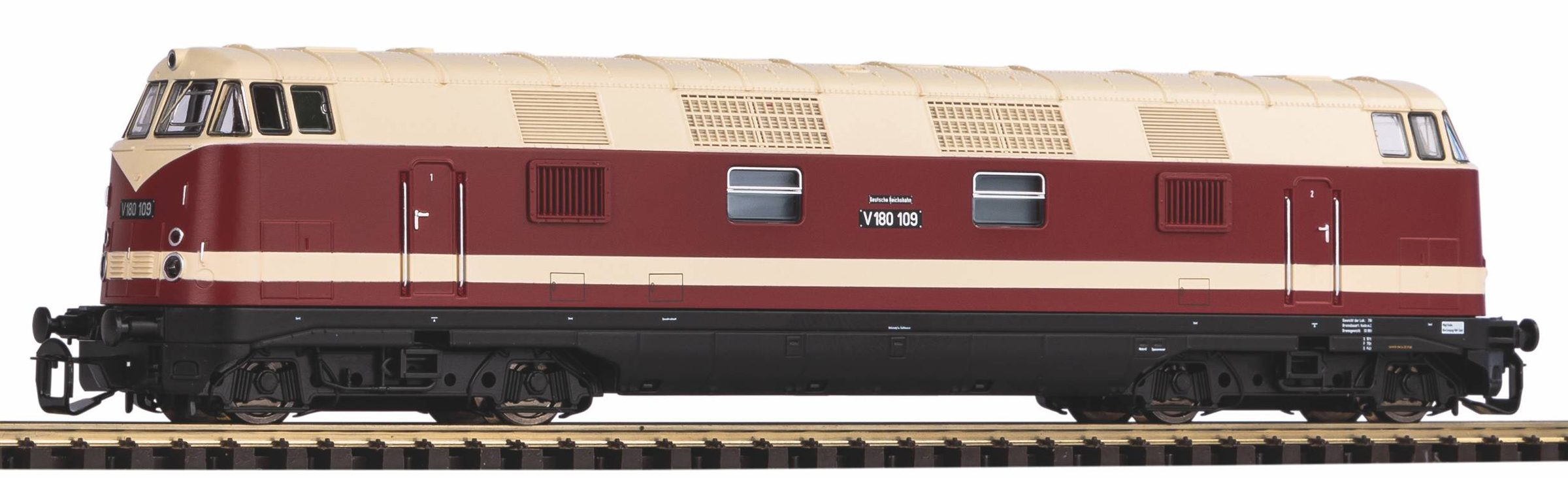měřítko 1:120 - rozchod kolejí 12 mm osvětlení - 3 reflektory vpředu, 2 světla vzadu, přepínatelné podle směru jízdy 4 hnané nápravy 2 bandážované nápravy kinematika krátkého spřáhla (KKK) podle normy NEM 358 digitální rozhraní podle NEM 658 s konektorem PluX16 minimálni projížděný poloměr 310 mm 162 mm - celková délka modelu přes nárazníky 4 - celkový počet náprav nebo rozložení náprav
