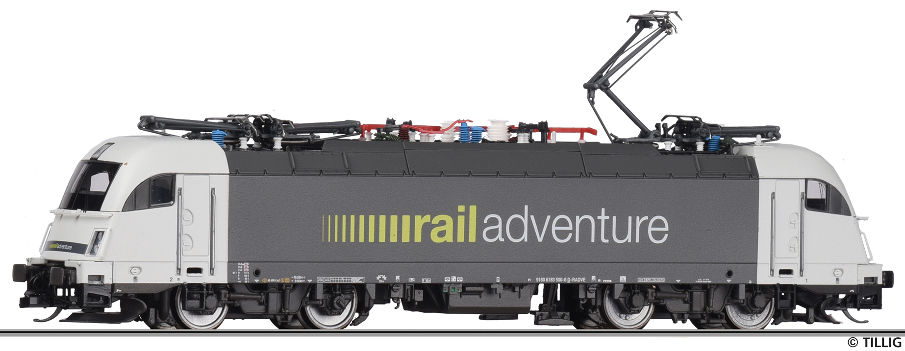 | elektrická lokomotiva v barevném schematu „RailAdventure“ |