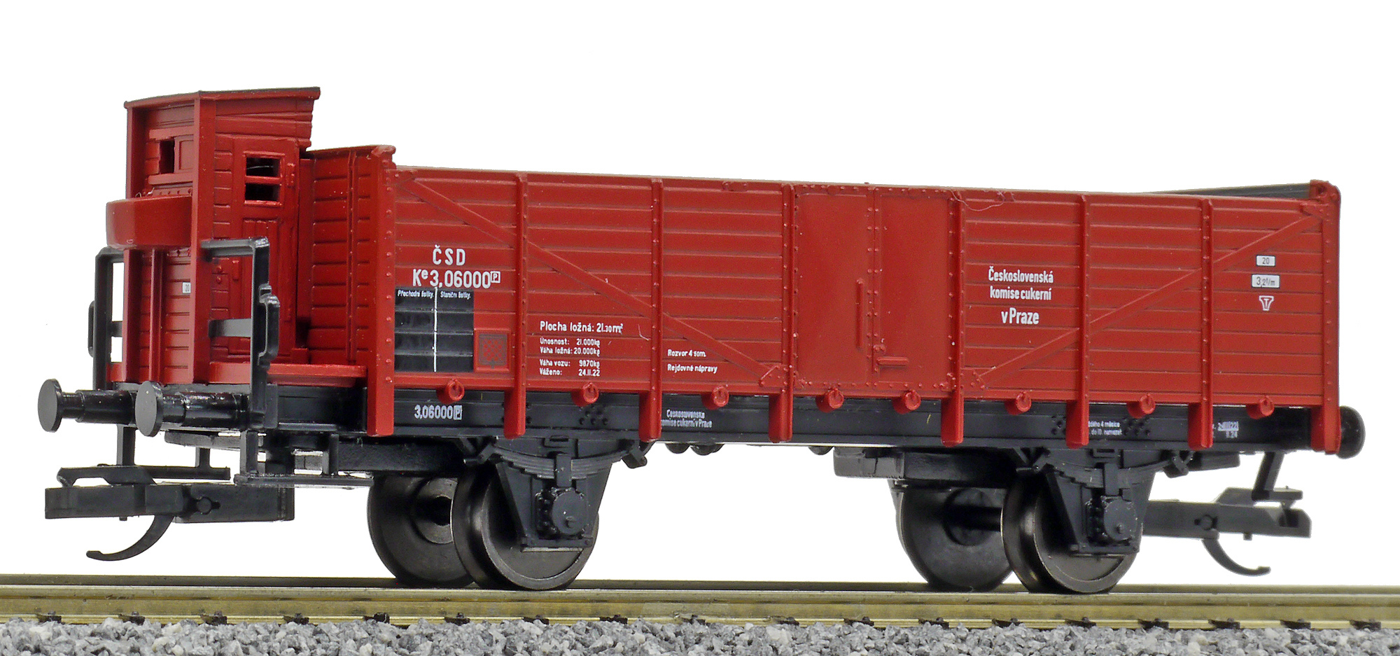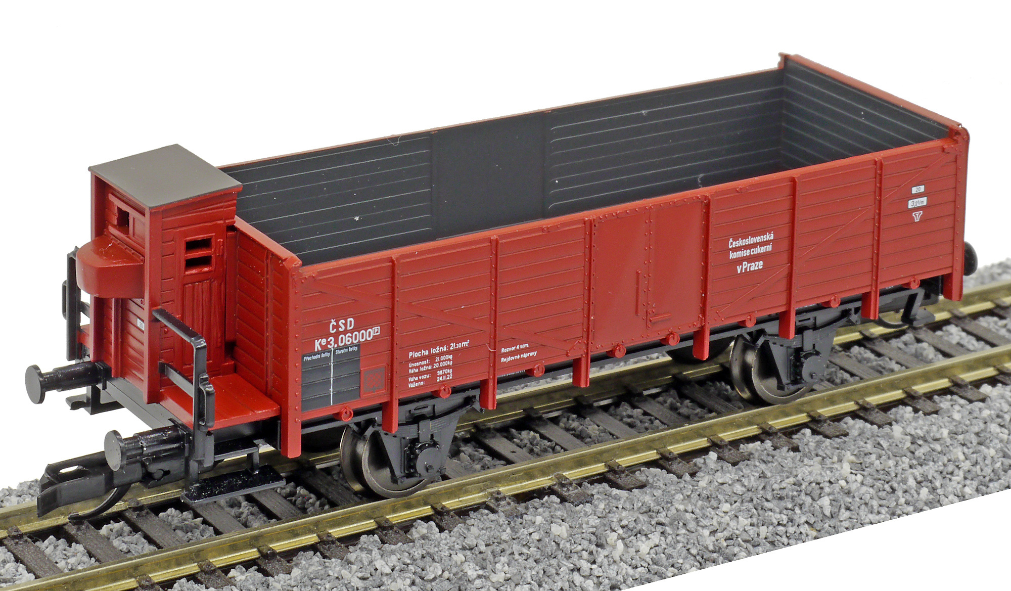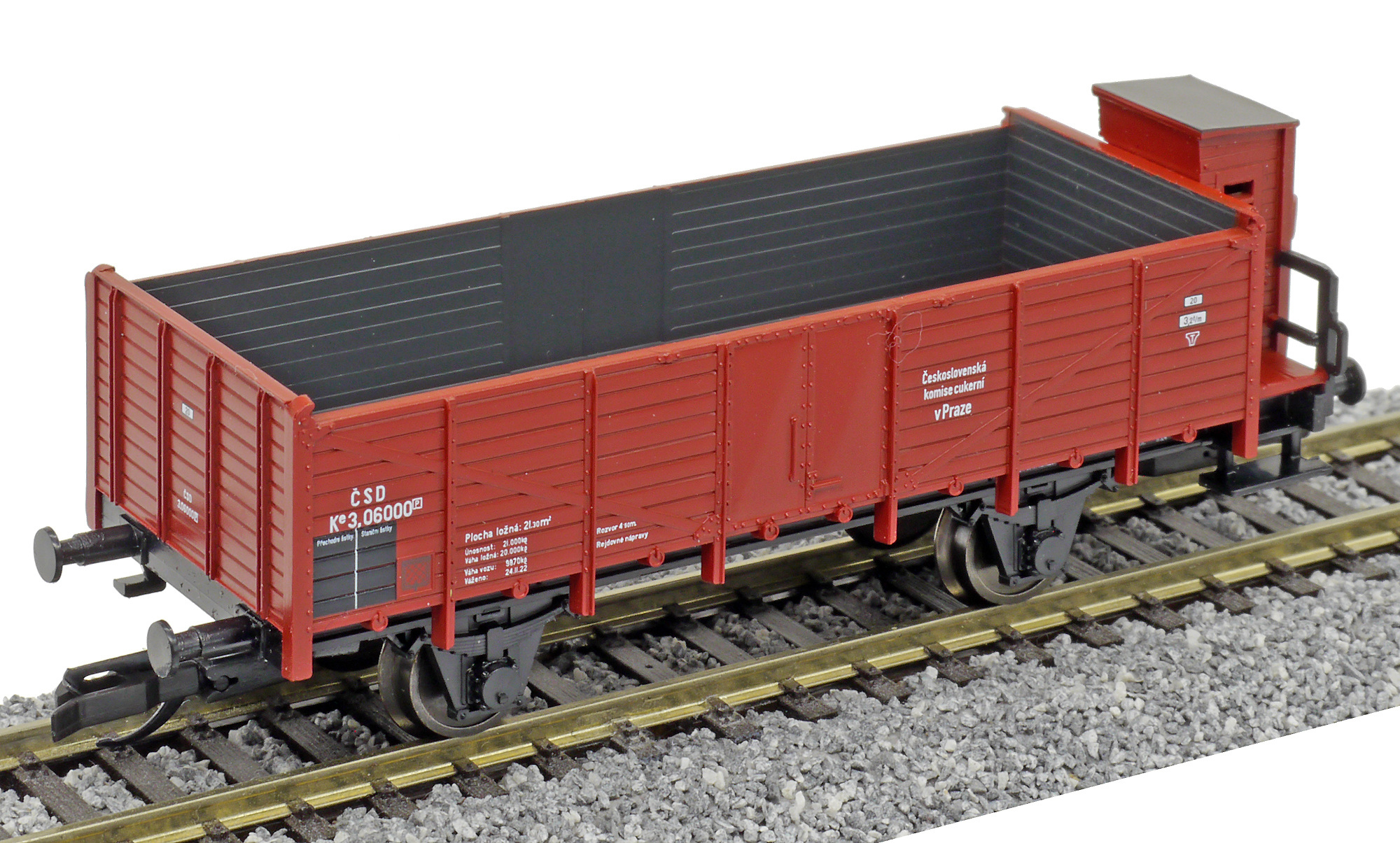 | otevřený nákladní vůz červenohnědý s brzdařskou budkou |