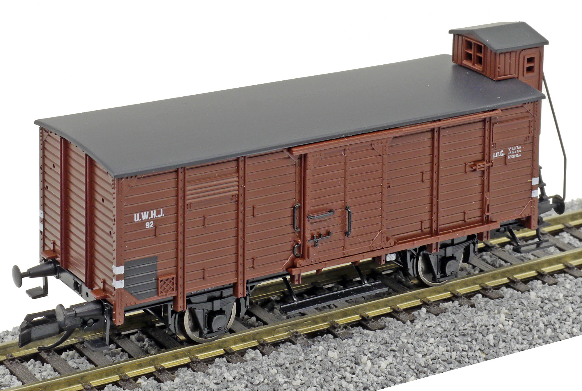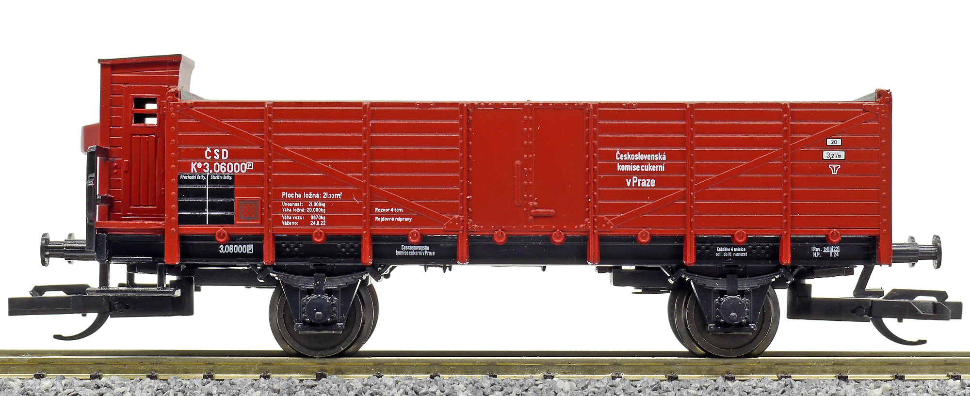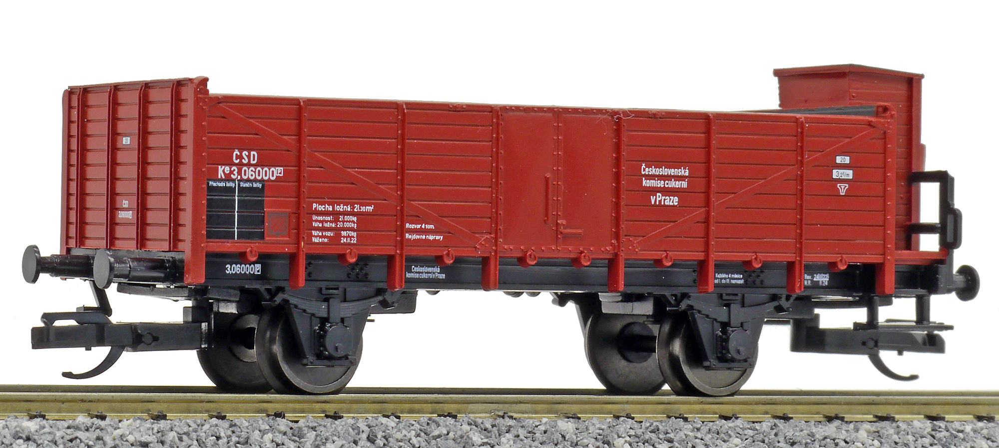 | otevřený nákladní vůz červenohnědý s brzdařskou budkou |
