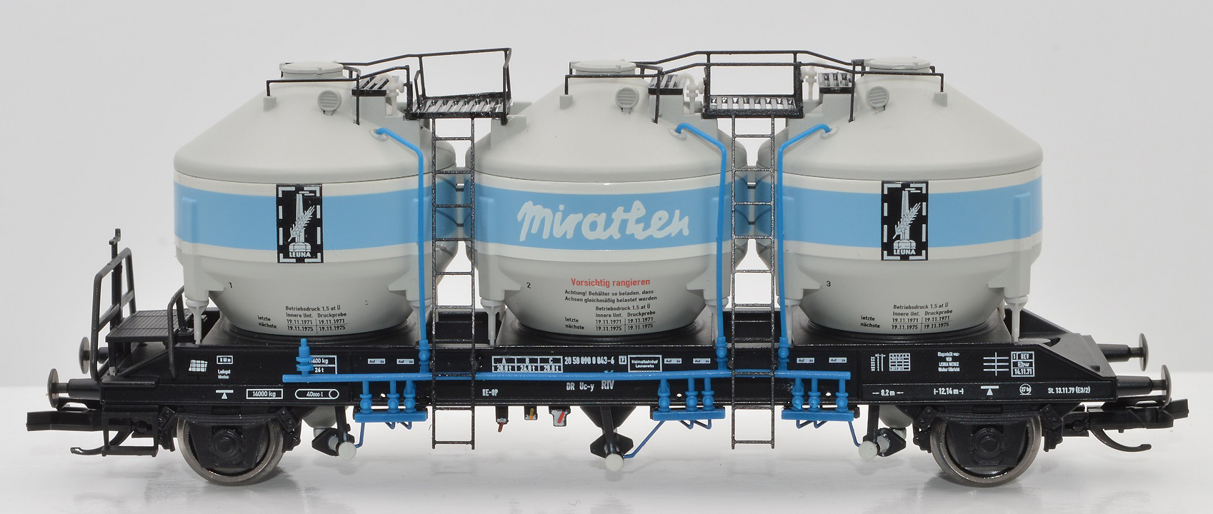 měřítko 1:120 - rozchod kolejí 12 mm kinematika krátkého spřáhla (KKK) podle normy NEM 358 101 mm - celková délka modelu přes nárazníky 2 - celkový počet náprav nebo rozložení náprav