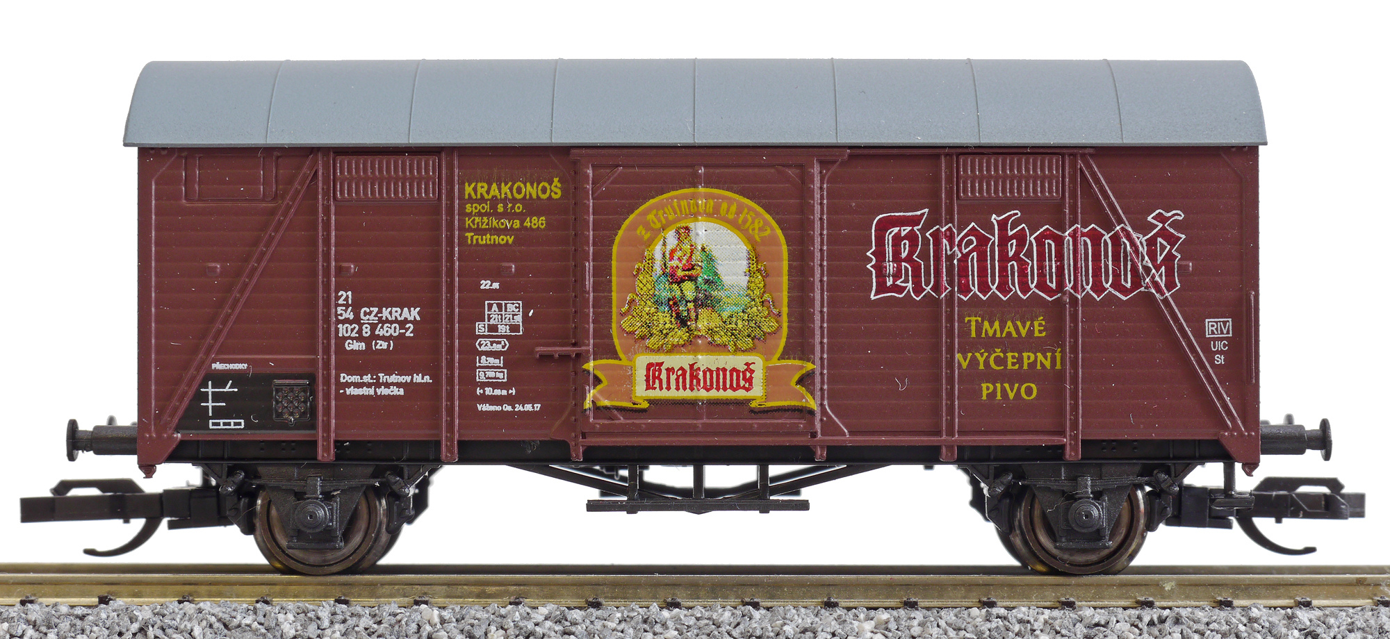 | krytý nákladní vůz tmavě hnědý s šedou střechou „Krakonoš“ |