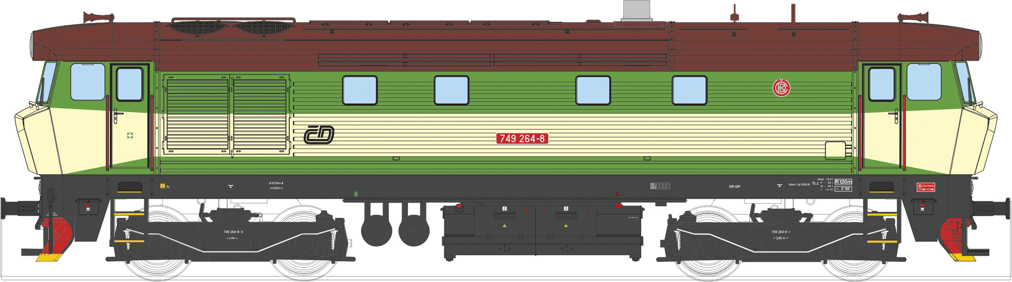 měřítko 1:120 - rozchod kolejí 12 mm osvětlení - 3 reflektory vpředu, 2 světla vzadu, přepínatelné podle směru jízdy 4 hnané nápravy kinematika krátkého spřáhla (KKK) podle normy NEM 358 digitální rozhraní podle NEM 662 s konektorem Next18 138 mm - celková délka modelu přes nárazníky 4 - celkový počet náprav nebo rozložení náprav