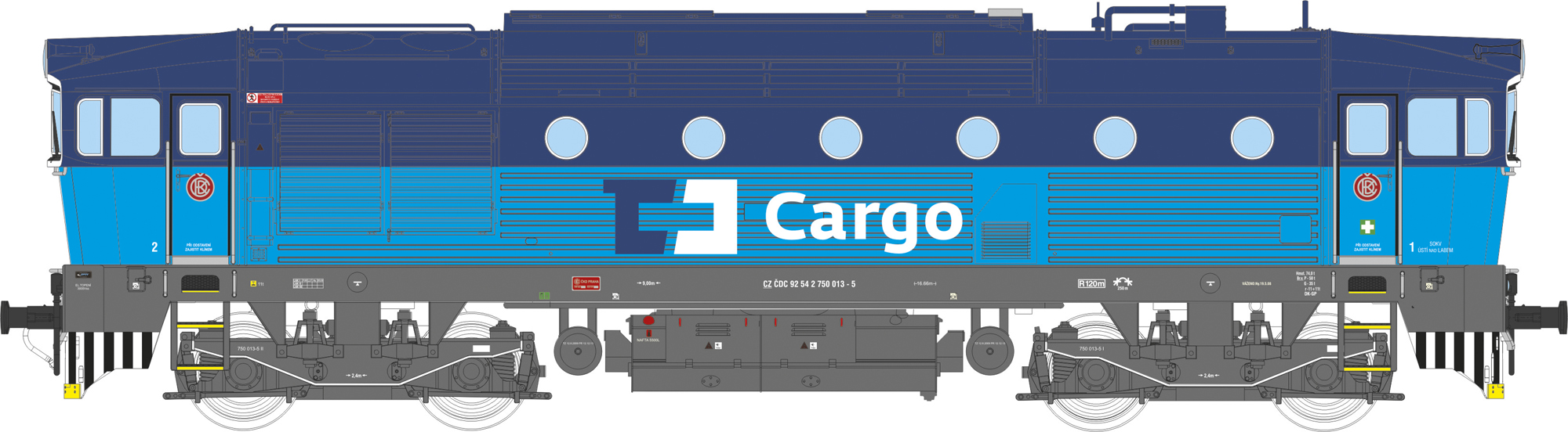 | dieselová lokomotiva v korporátním modrém nátěru ČD Cargo |