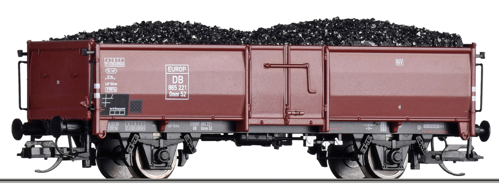 otevřený nákladní vůz červenohnědý ložený uhlím
