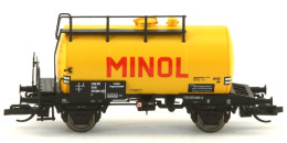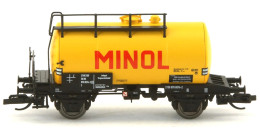 | set tří žlutých kotlových vozů s logem „MINOL“ |