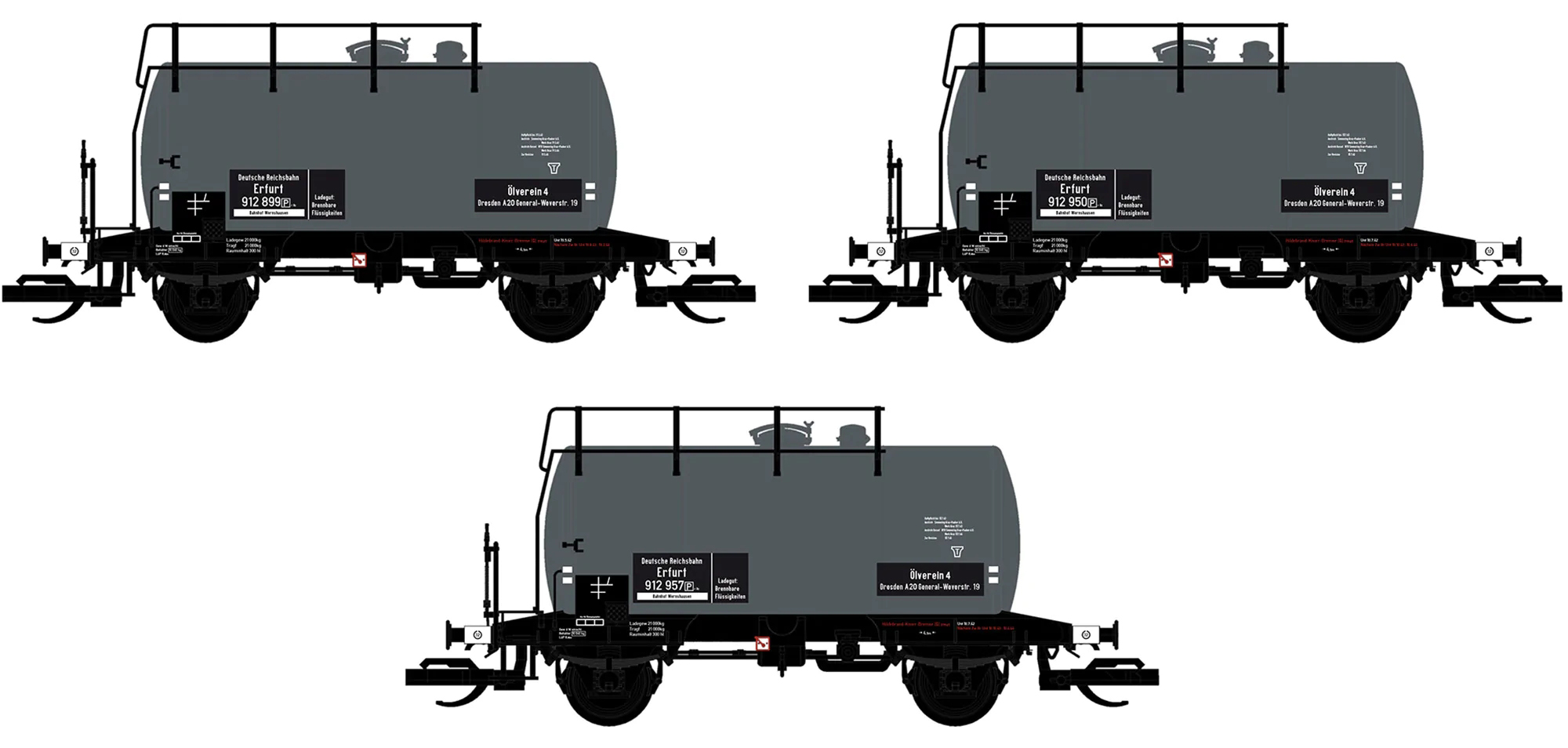 | set tří šedých kotlových vozů „Ölverein 4“ |