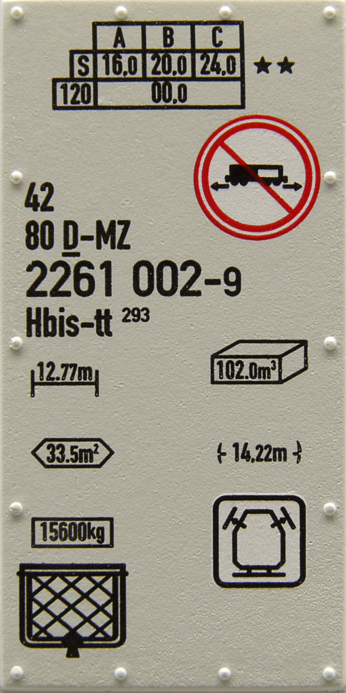 | • 42 80 2261 002-9 | → | H - krytý vůz zvláštní stavby |