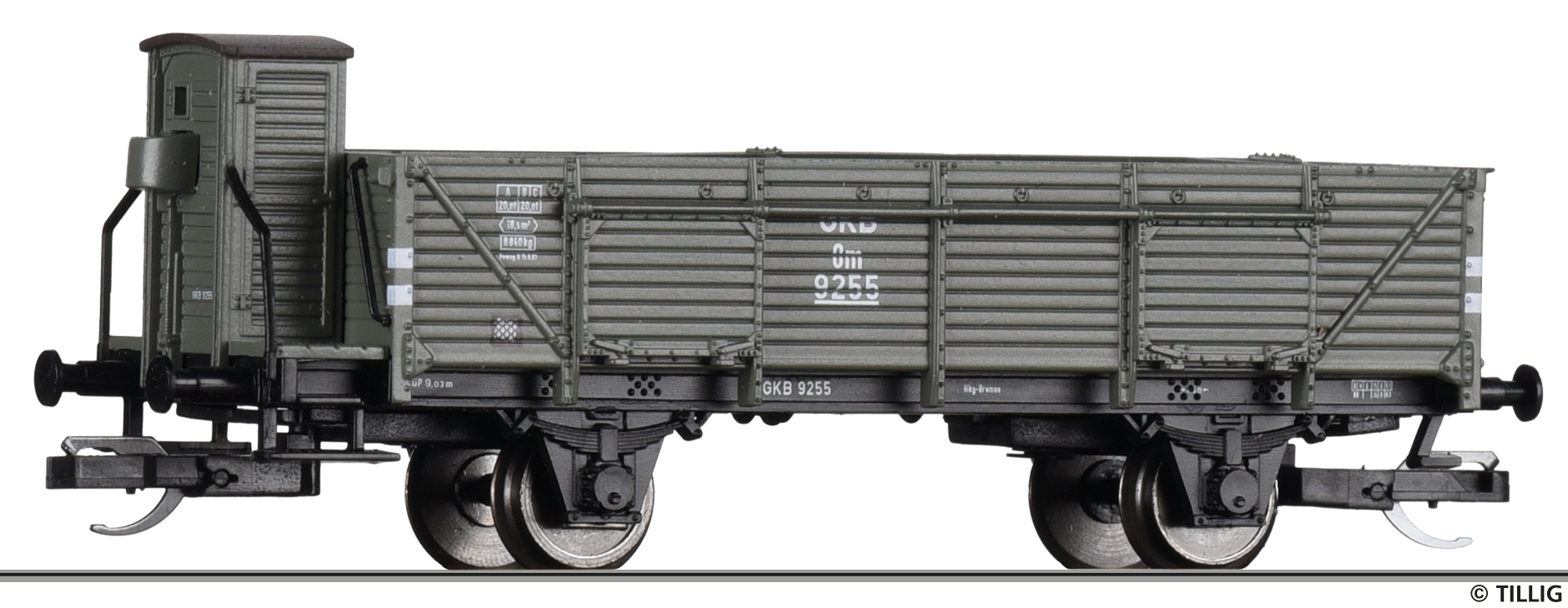 Popis   otevřený nákladní vůz tamvě šedý s brzdařskou budkou