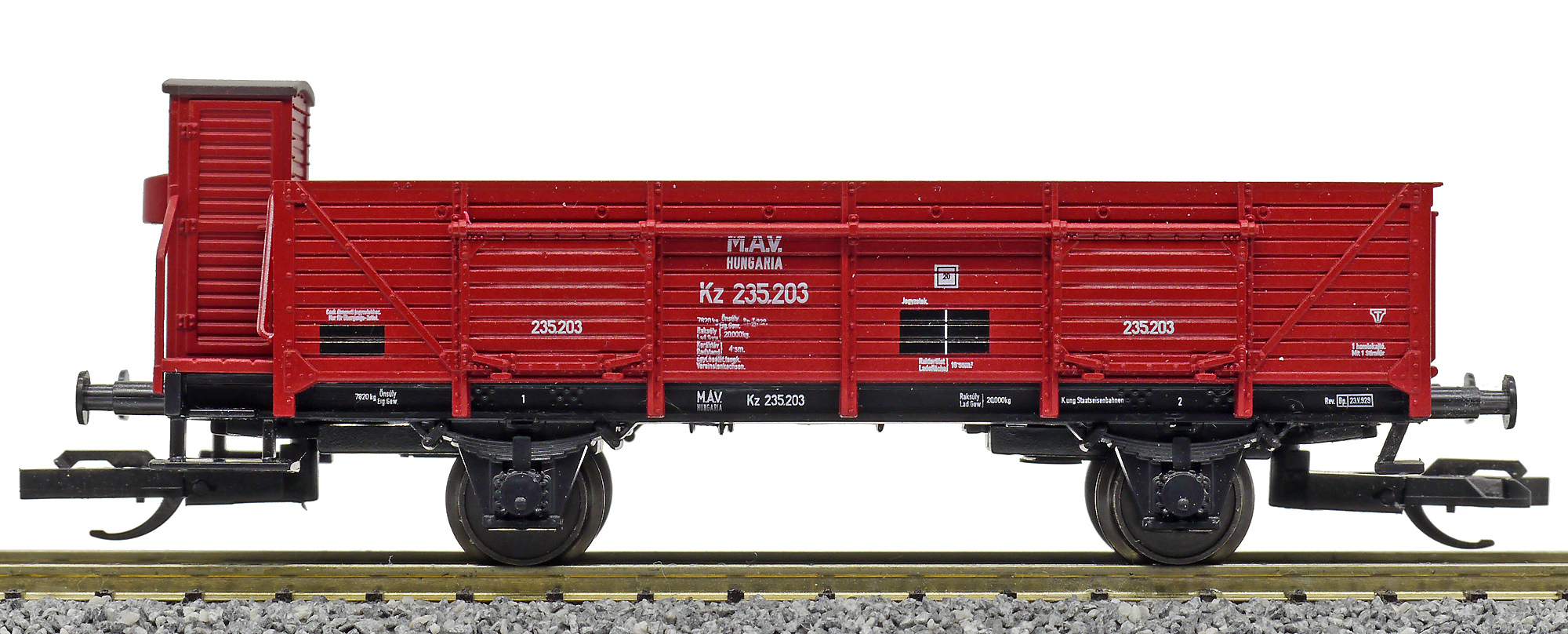 Popis   otevřený nákladní vůz červenohnědý s brzdařskou budkou