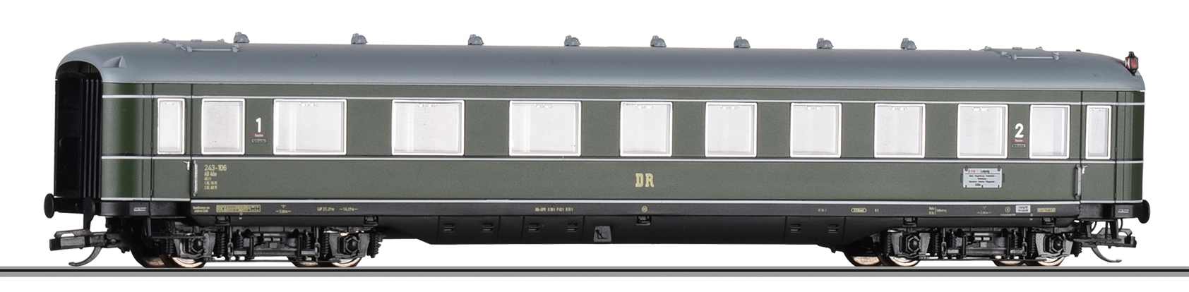 | osobní vůz zelený s šedou střechou 1./2. tř. |
