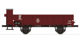 | otevřený nákladní vůz červenohnědý s brzdařskou budkou |