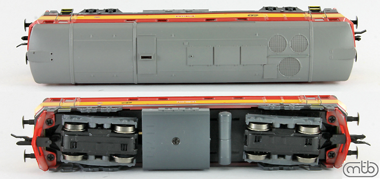 měřítko 1:120 - rozchod kolejí 12 mm osvětlení - 3 reflektory vpředu, 2 světla vzadu, přepínatelné podle směru jízdy 4 hnané nápravy 0 bandážovaných náprav digitální rozhraní podle NEM 658 s konektorem PluX16 137 mm - celková délka modelu přes nárazníky 4 - celkový počet náprav nebo rozložení náprav 300 g - hmotnost brutto - model včetně prodejního obalu 205 g - hmotnost netto - pouze model
