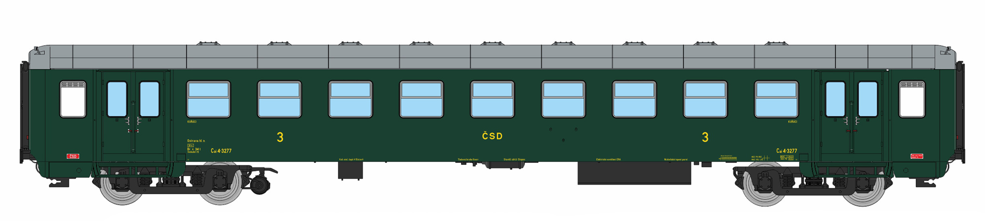 osobní vůz zelený s šedou střechou 3. tř., Ostrava