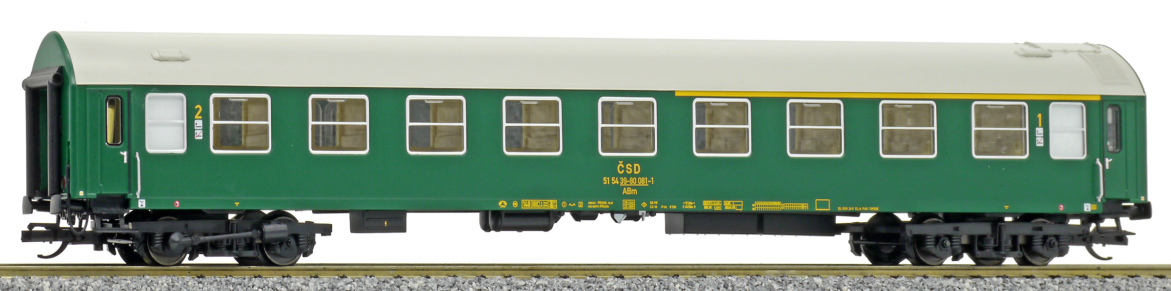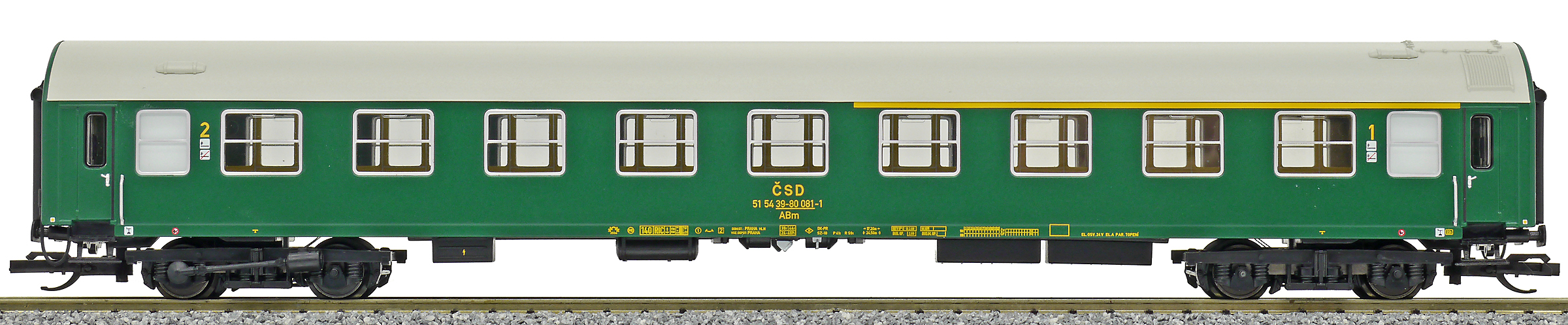 Popis   rychlíkový vůz zelený s šedou střechou 1./2. tř.
