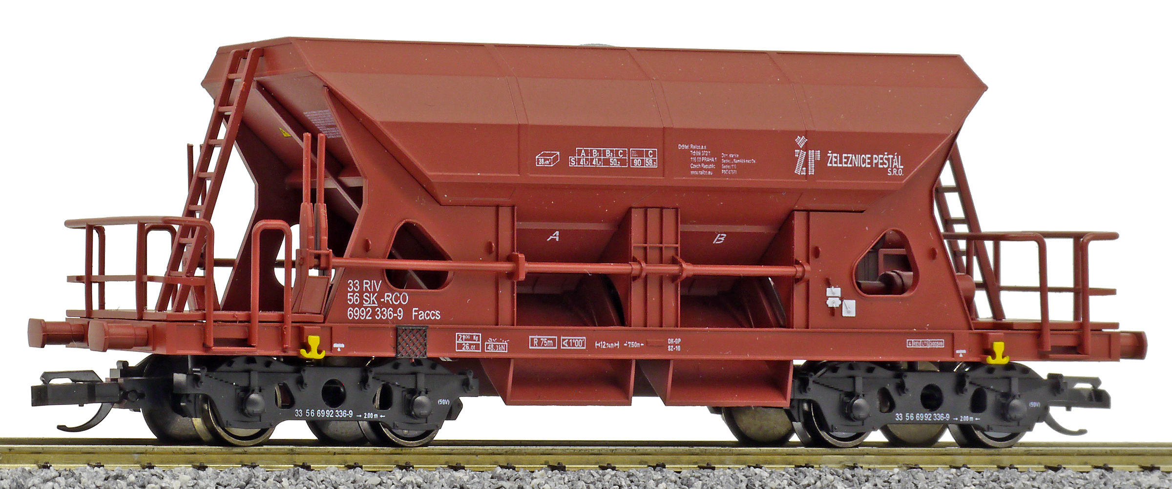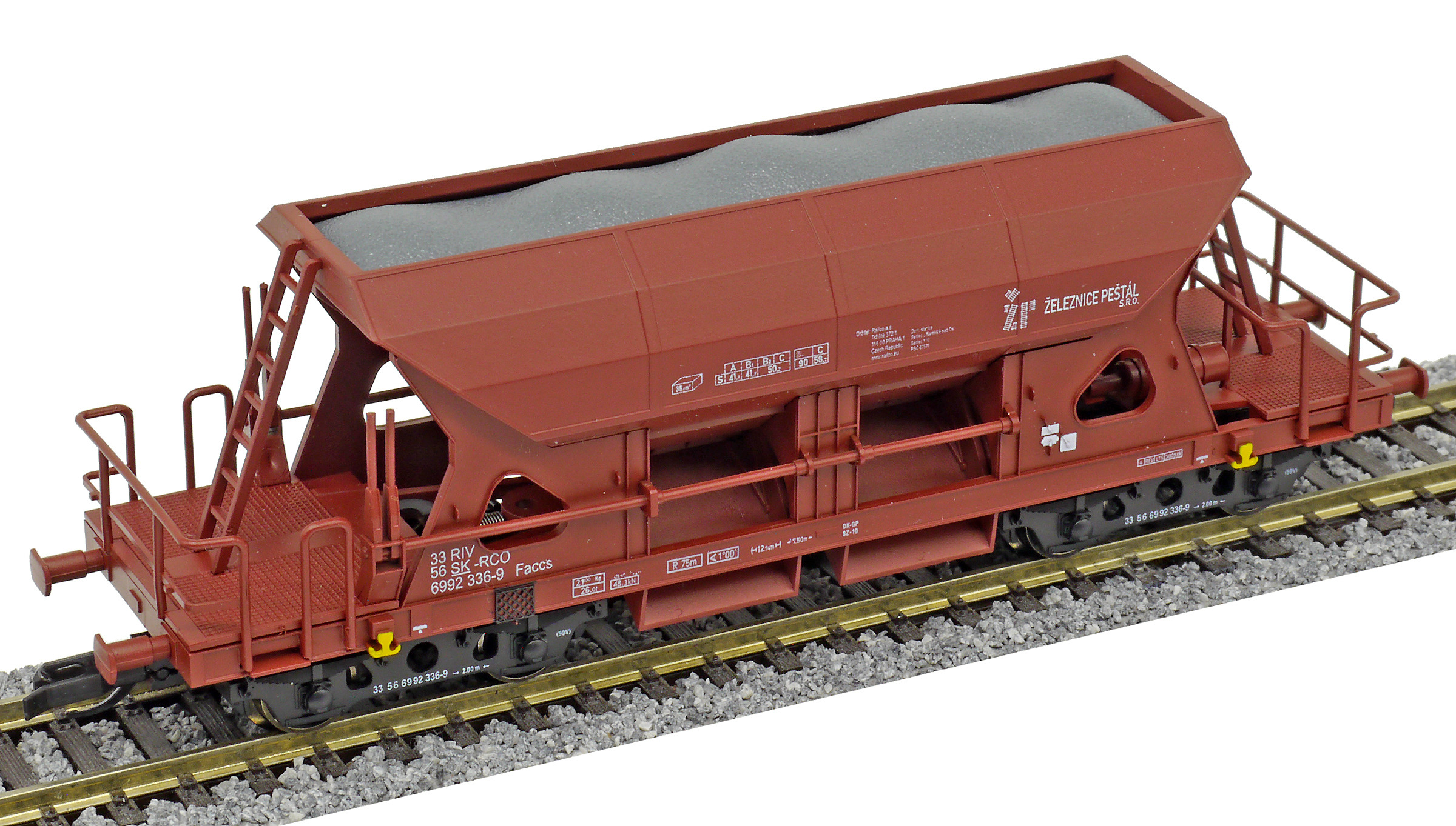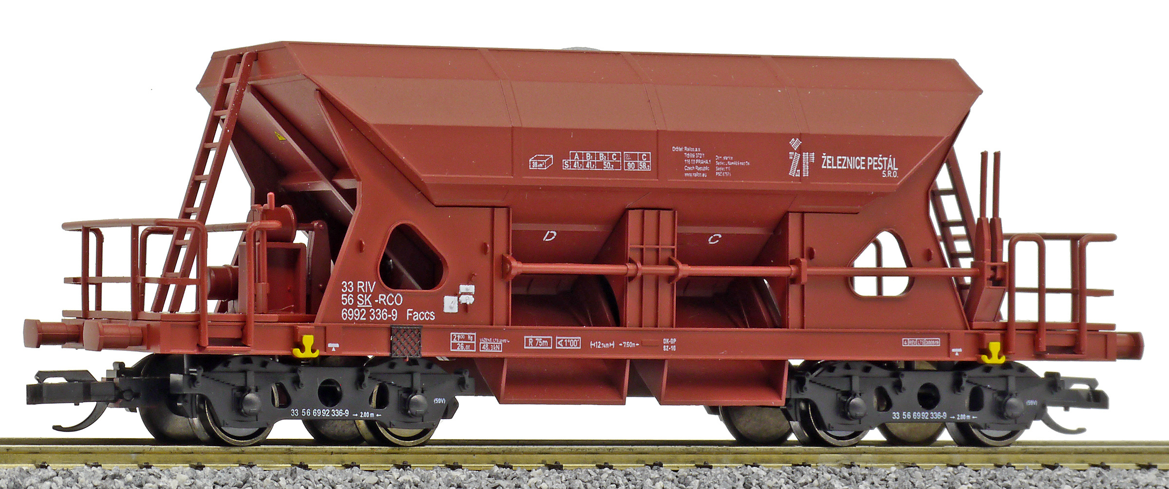 | • 33 56 6992 336-9 | → | nákladní, s podvozky, pevný rozchod, soukromý vůz, RIV, PPV |