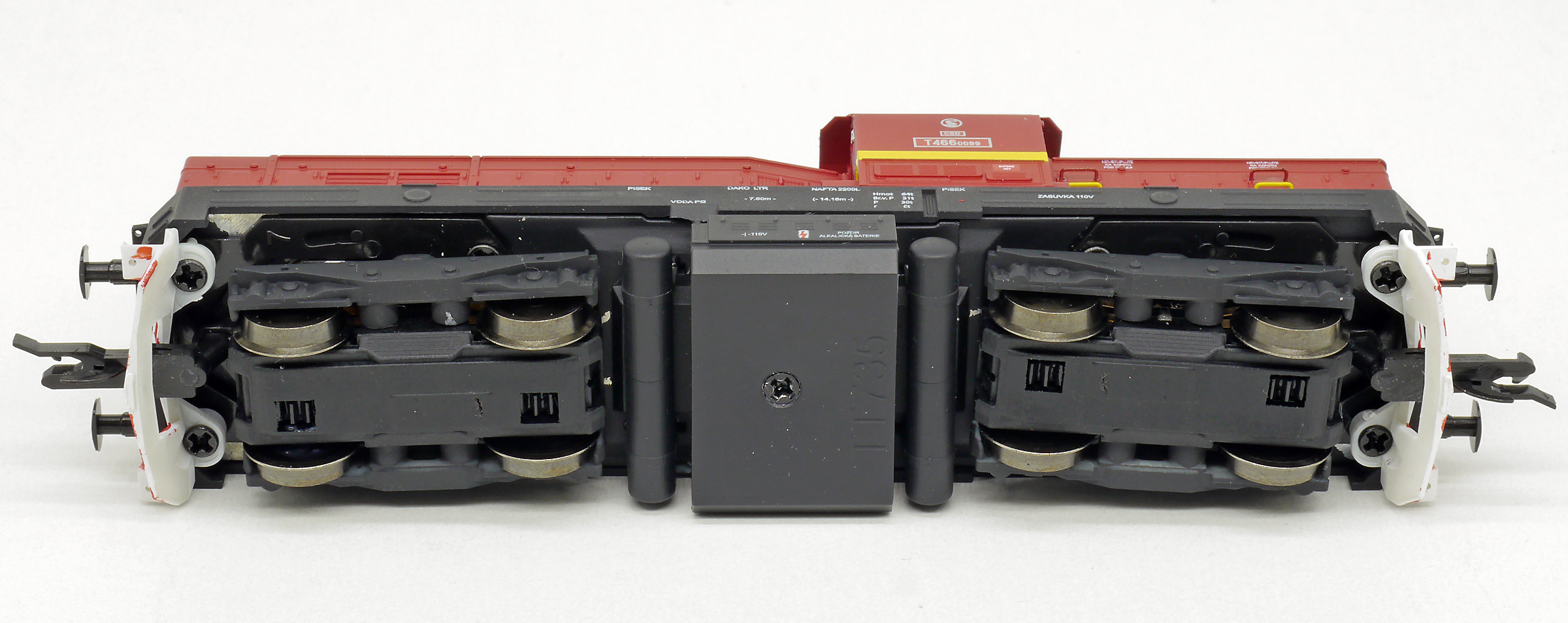 měřítko 1:120 - rozchod kolejí 12 mm osvětlení - 3 reflektory vpředu, 2 světla vzadu, přepínatelné podle směru jízdy 4 hnané nápravy 0 bandážovaných náprav kinematika krátkého spřáhla (KKK) podle normy NEM 358 digitální rozhraní podle NEM 662 s konektorem Next18 118 mm - celková délka modelu přes nárazníky 4 - celkový počet náprav nebo rozložení náprav 230 g - hmotnost brutto - model včetně prodejního obalu 130 g - hmotnost netto - pouze model