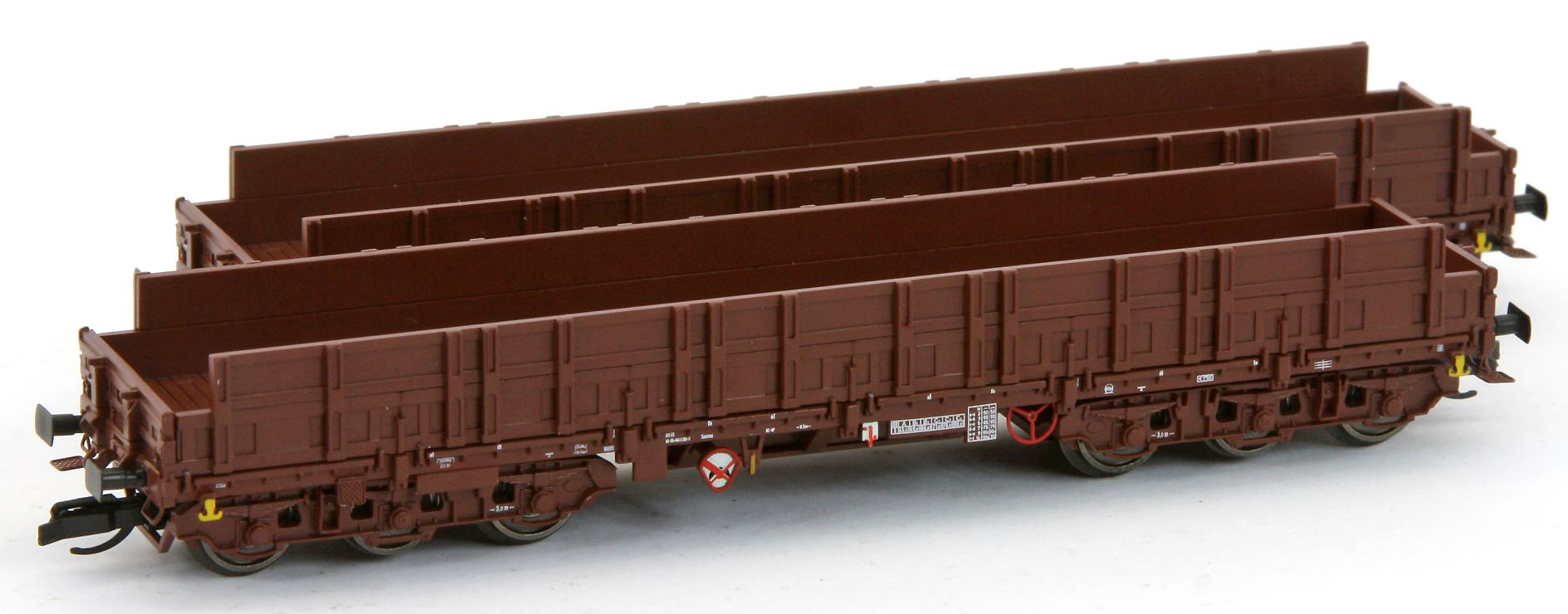 set dvou plošinových nákladních vozů s vysokými bočními stěnami