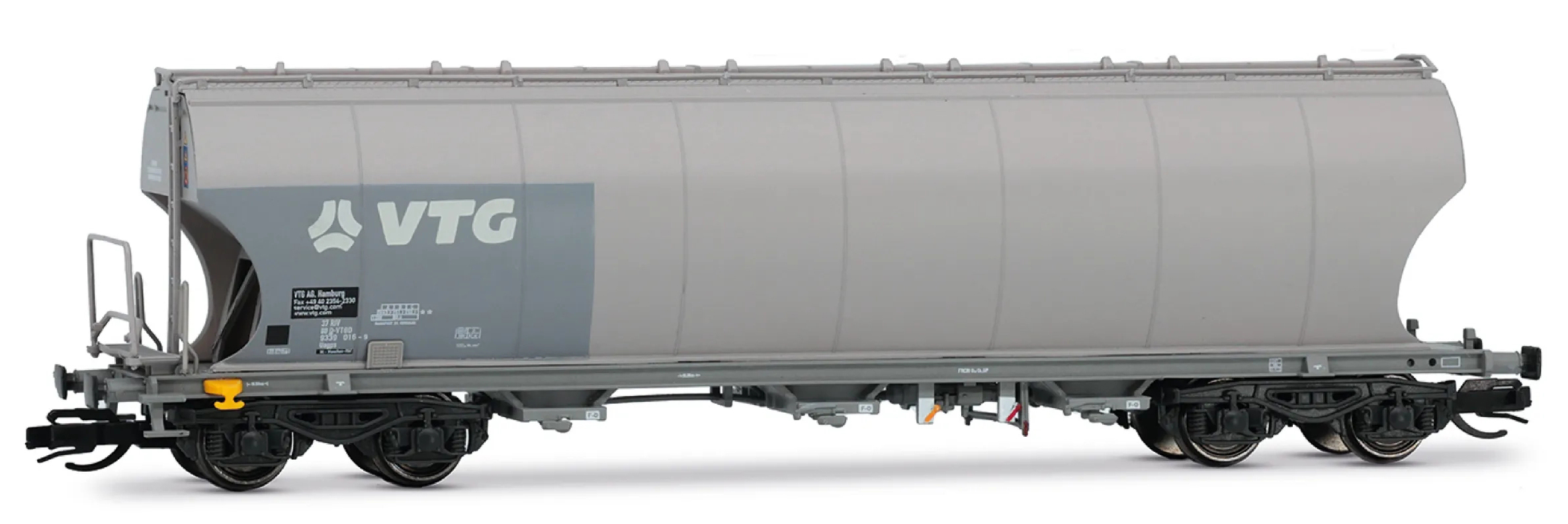| nákladní samovýsypný vůz šedý s logem „VTG“ |