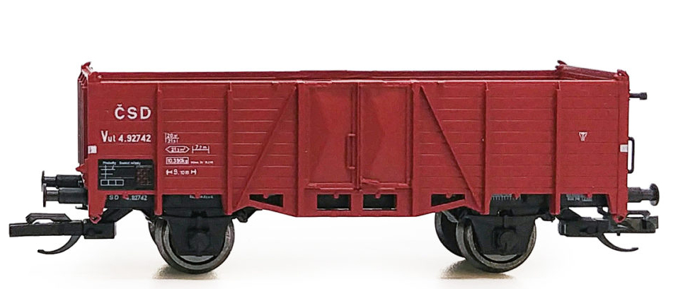 | otevřený nákladní vůz červenohnědý s brzdařskou budkou |
