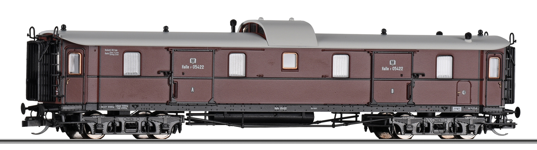 Popis   zavazadlový vůz červený s šedou střechou „Preußischer Schnellzug“