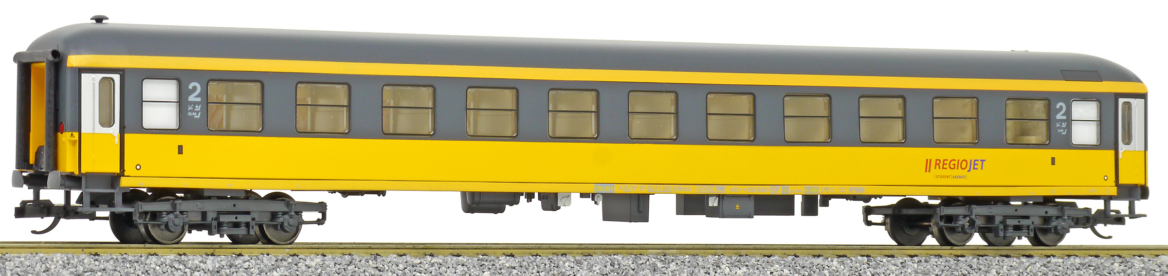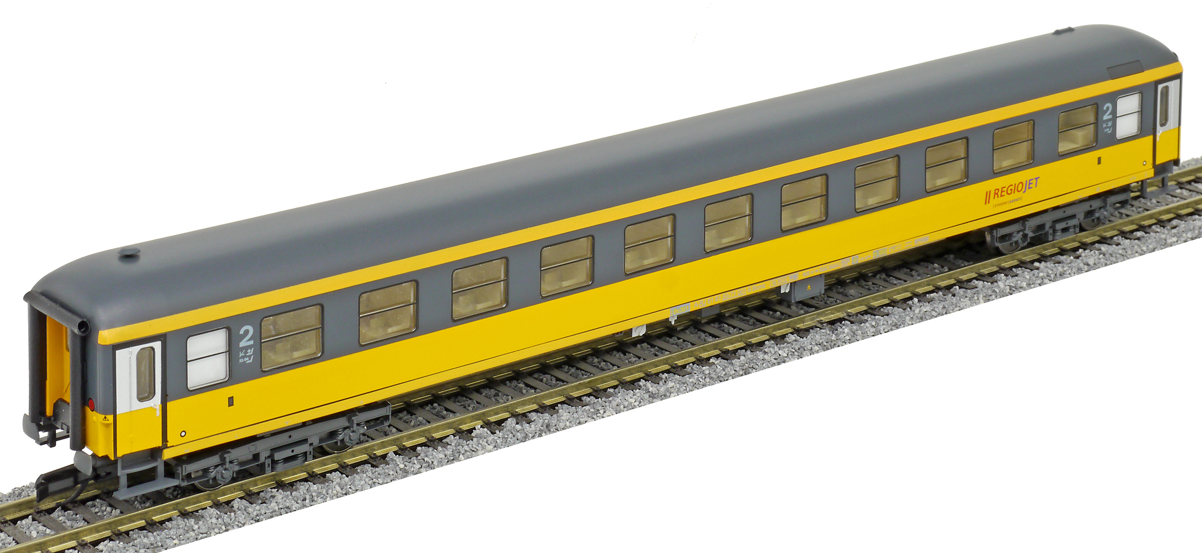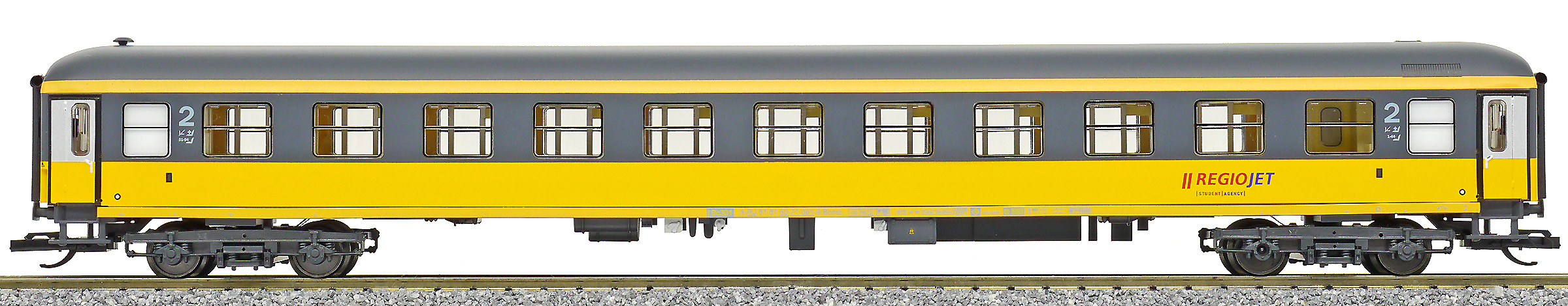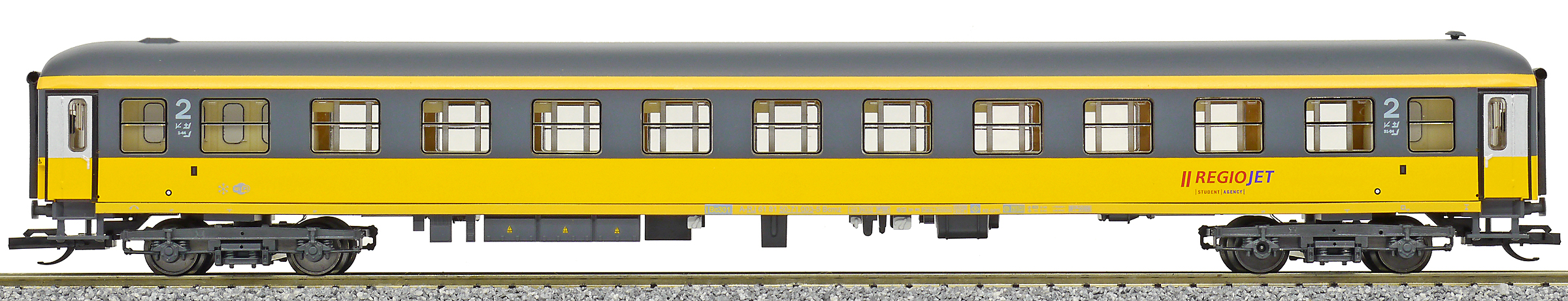 | lehátkový vůz v barevném schematu „RegioJet“ 2. tř. |