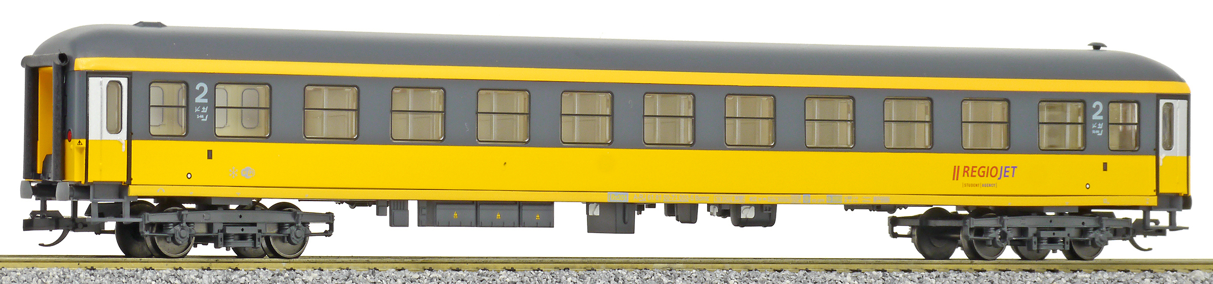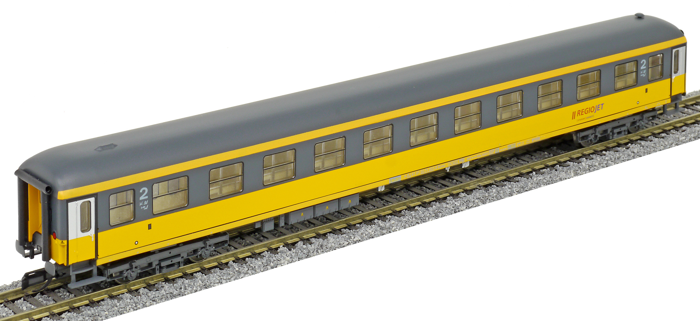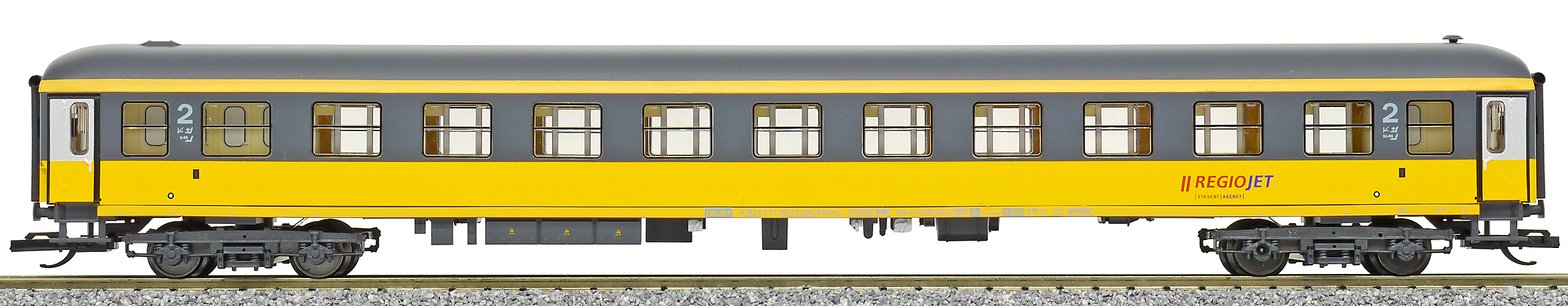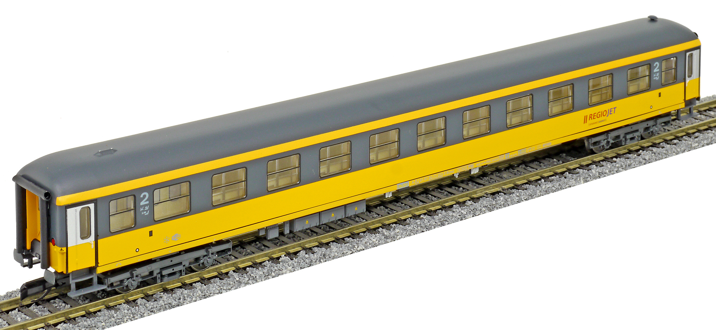 | lehátkový vůz v barevném schematu „RegioJet“ 2. tř. |