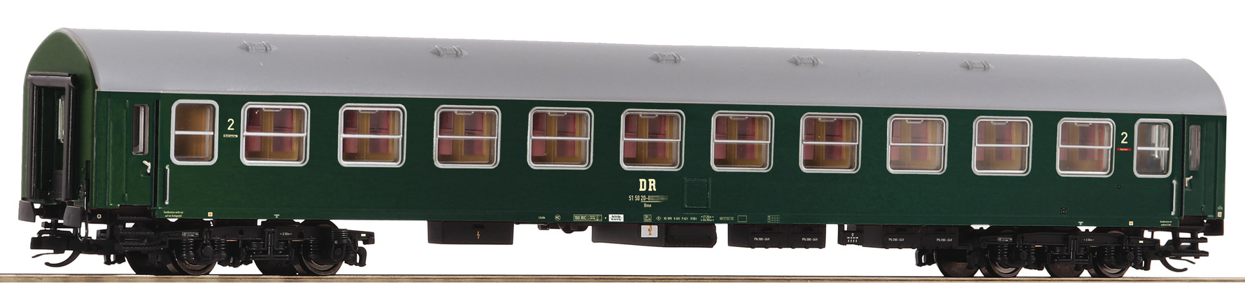 | rychlíkový vůz zelený s šedou střechou 2. tř. se zavazadlovým oddílem |