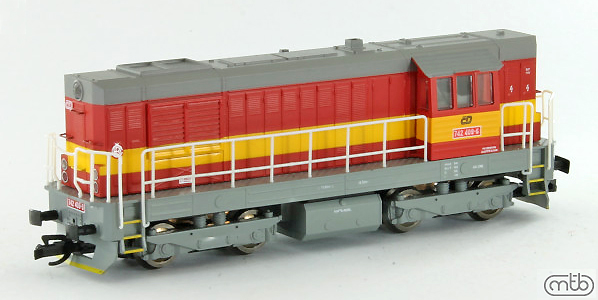 Popis   dieselová lokomotiva červená se žlutým výstražným pruhem