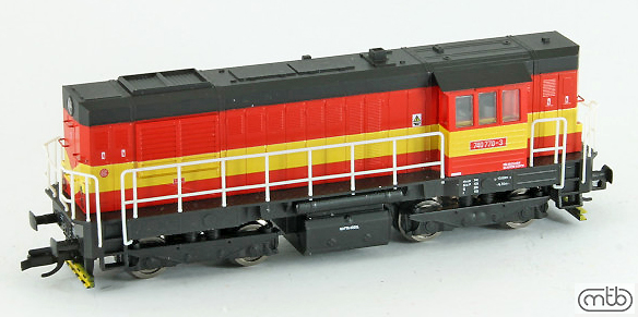 Popis   dieselová lokomotiva červená-černá s výstražným pásem