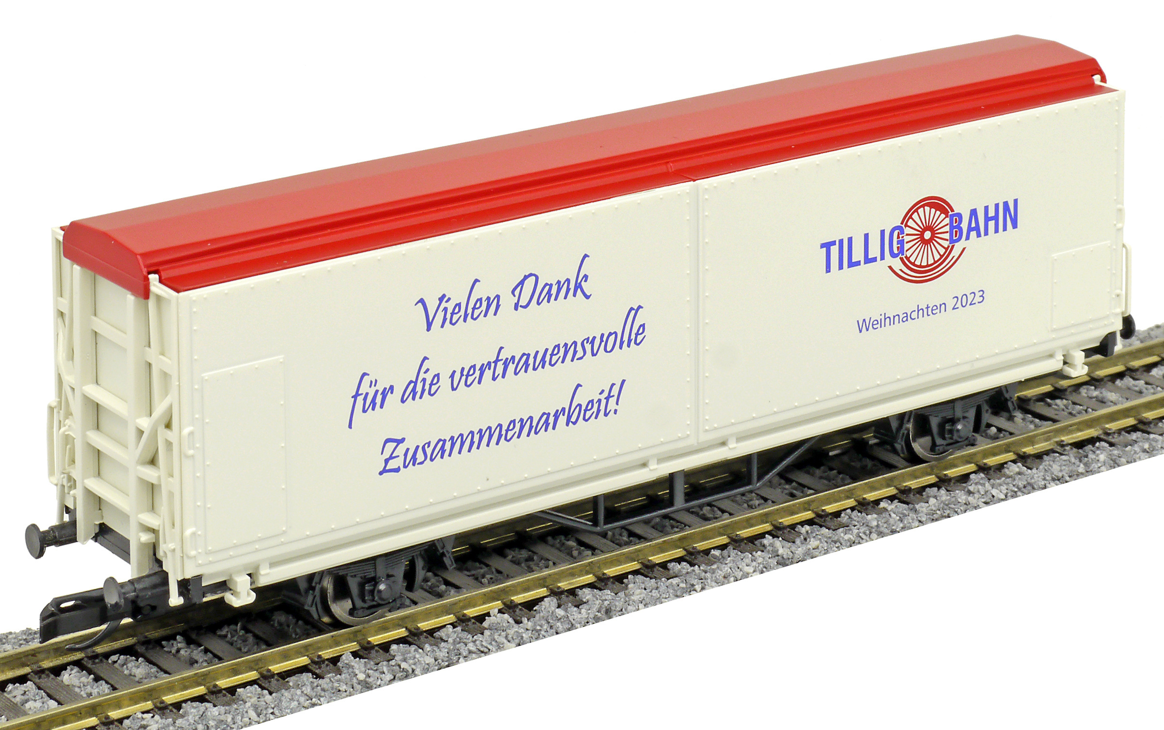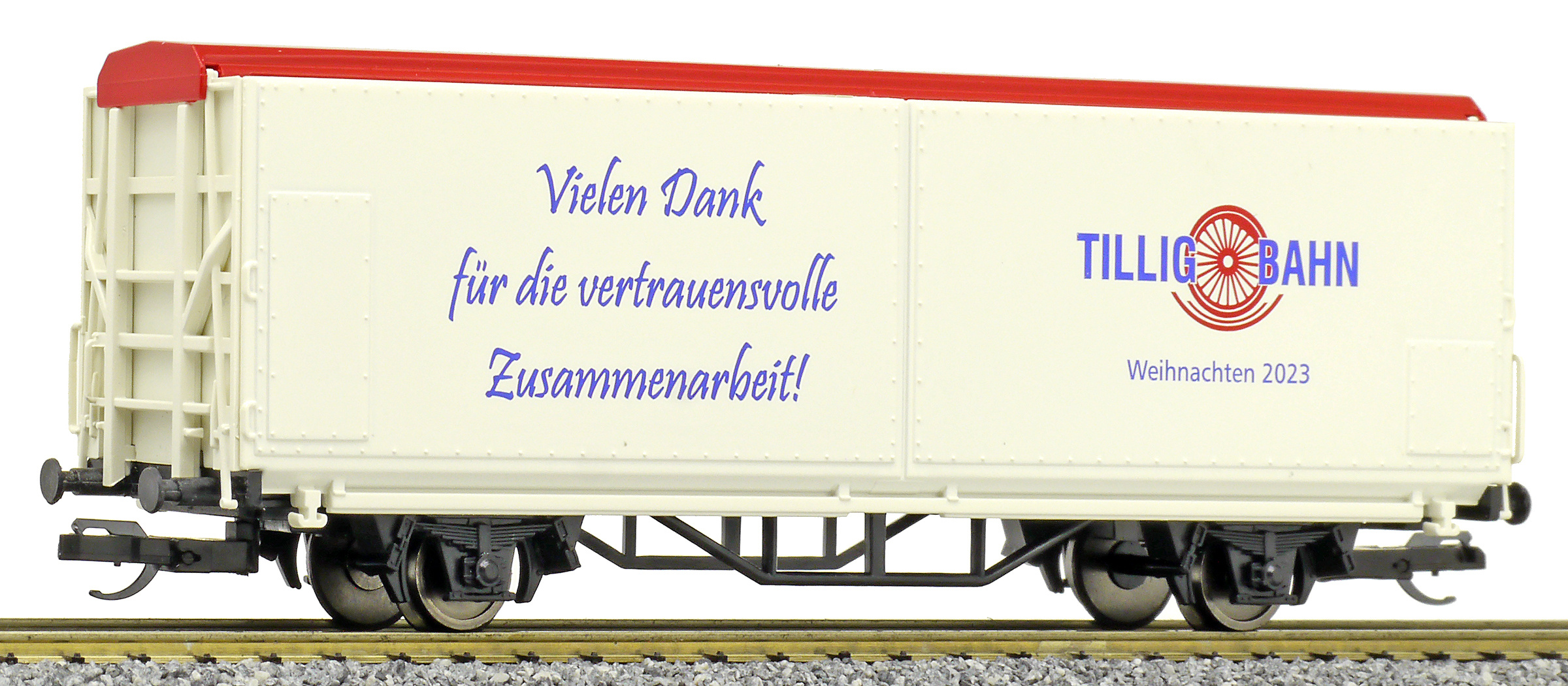 Popis   nákladní vůz s posuvnými bočnicemi světle krémový „Danke 2023“