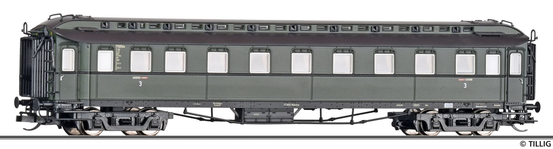 osobní vůz tmavě zelený s černou střechou 3. tř.