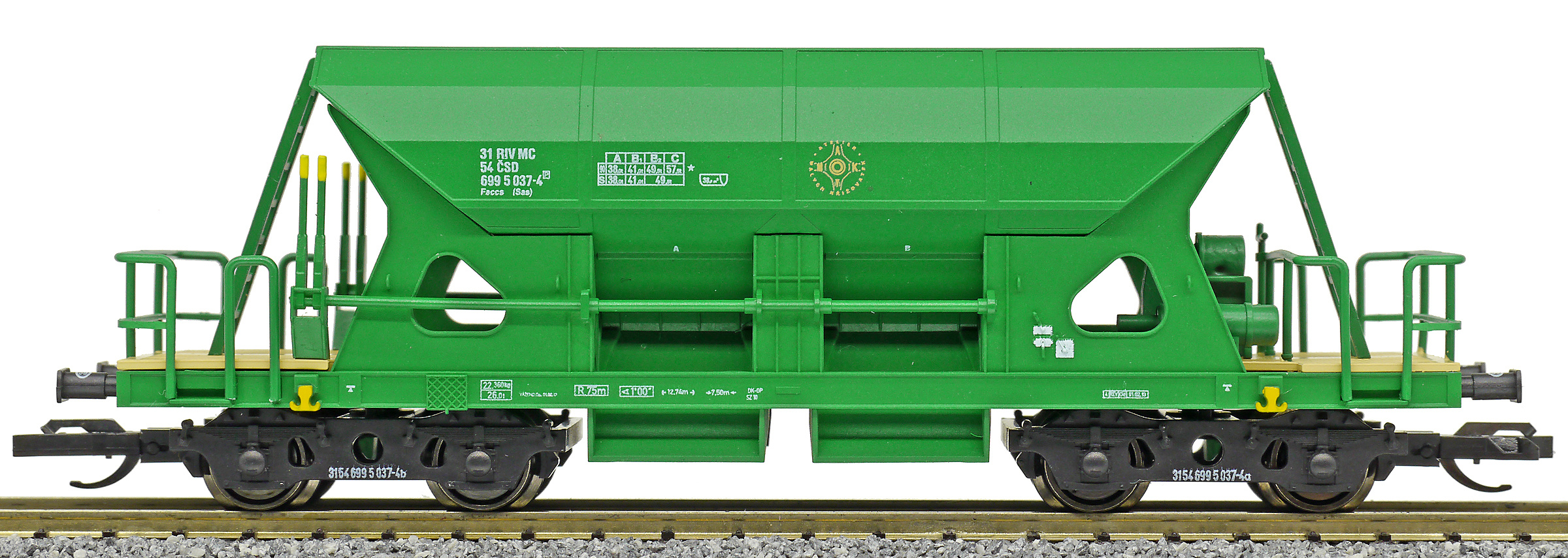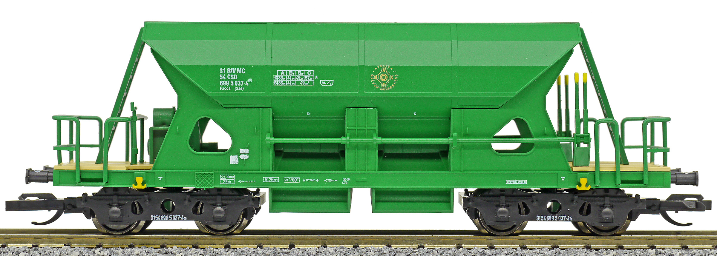 | • 31 54 699 5 037-4 | → | nákladní, s podvozky, pevný rozchod, ve vlastnictví železniční správy, RIV, PPV |